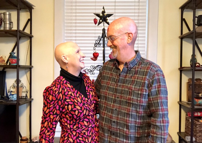 With this post I want to give a shout-out to my wonderful husband, who is my friend, my love, my partner, daily hugger, and caregiver. He didn’t sign up for a marriage marked by cancer anymore than I did, and he has stood by me and been my rock through good days and bad. I honestly don’t know how I would have gotten through without him by my side. A lot of people tell me how strong I am (arguable, but that’s a subject for another day), but Steve–he is my evergreen, tall and strong and steady, a sheltering force in all seasons.
