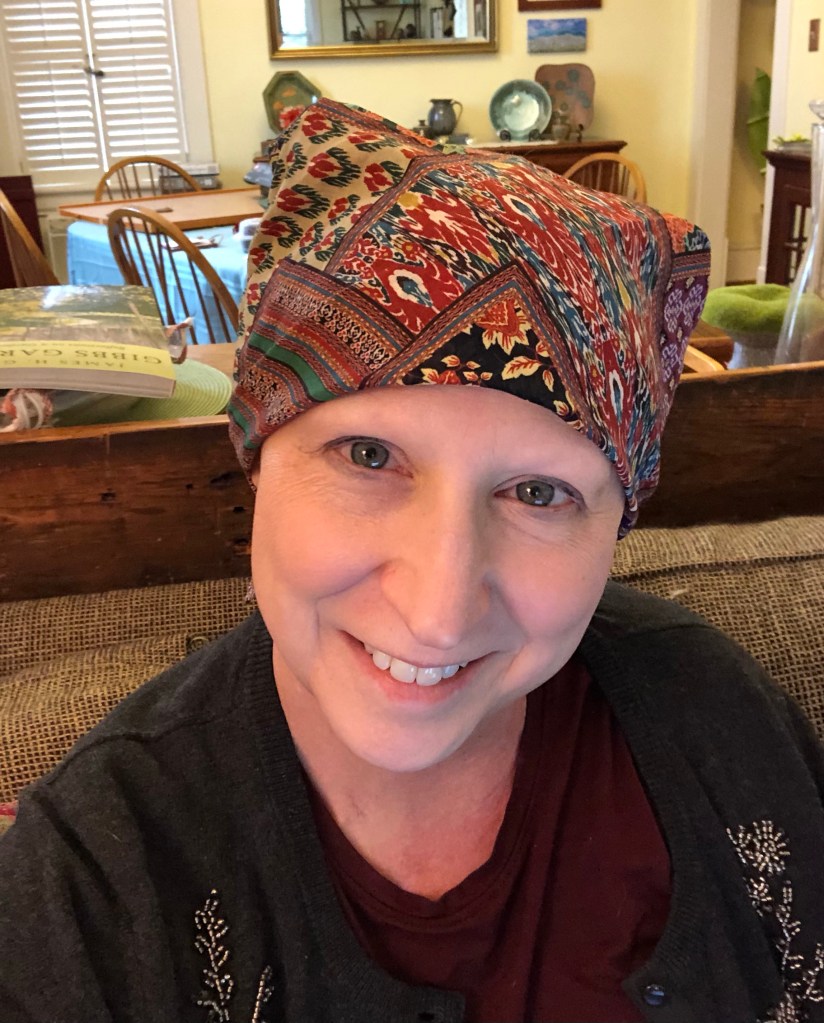 At present I don’t venture out much, but I do wonder, post-pandemic, what the wider world’s response to my changed appearance will be. In the meantime I’ve been trying to find ways to get comfortable myself with my new look. There are plenty of products out there to help me fake what’s missing–faux eyelashes, eyebrow tattoo stickers, wigs. But faking it takes a lot of time and energy, and I’m not persuaded trying to “pass” looks all that great, or is all that convincing, anyway.