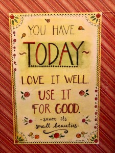 As another year (and what a year…) draws to a close, I’ve been thinking a lot about the passage of time. Because of the relative frequency of my treatment schedule and the fact I have a couple of days after each treatment where I’m largely out of commission, I live with a near constant sense of an impending deadline. As each treatment day approaches, I feel much like I do when I’m readying for a trip–there’s always a list of things I need and want to do before we leave, and it always seems the time is too short to make it all happen.